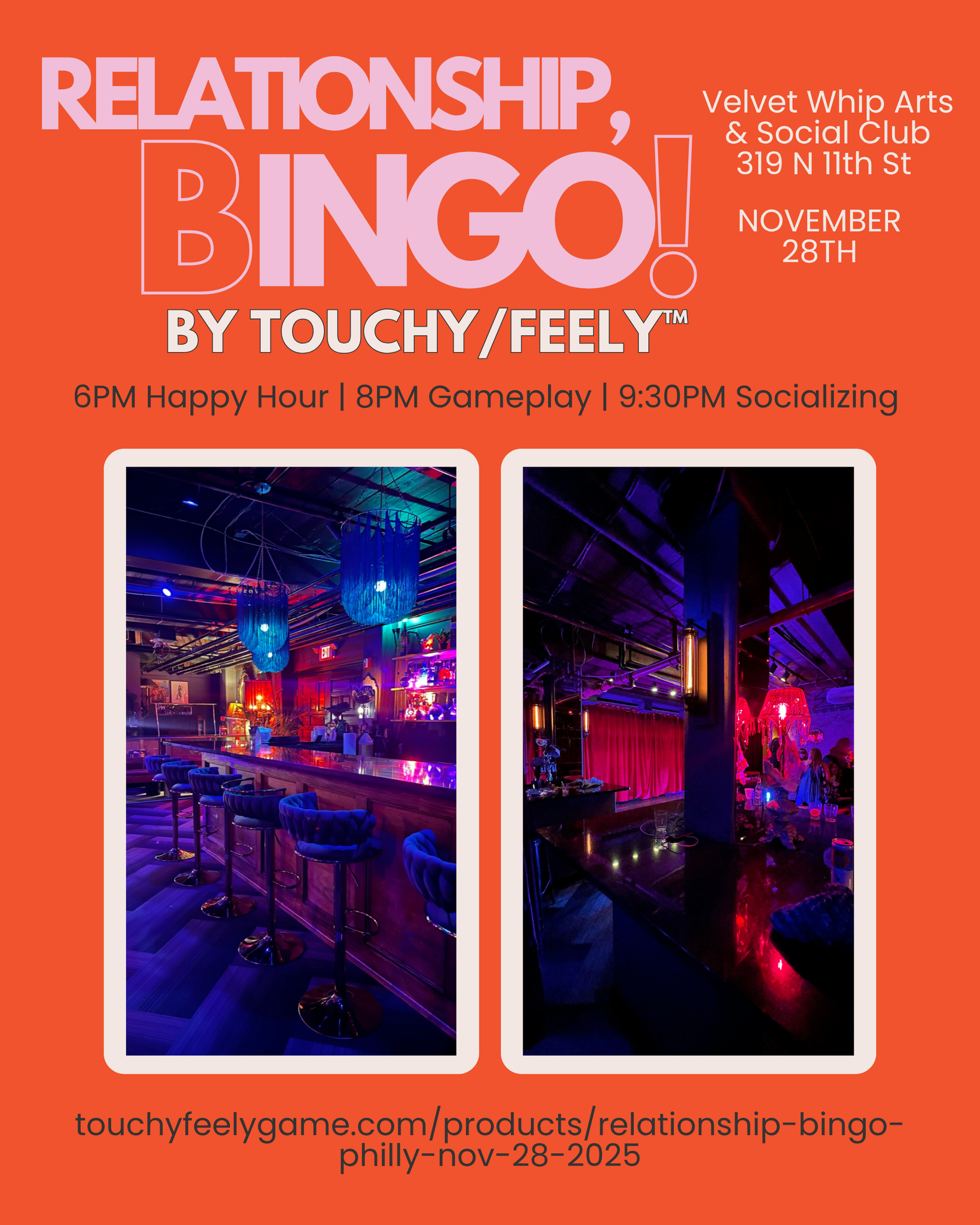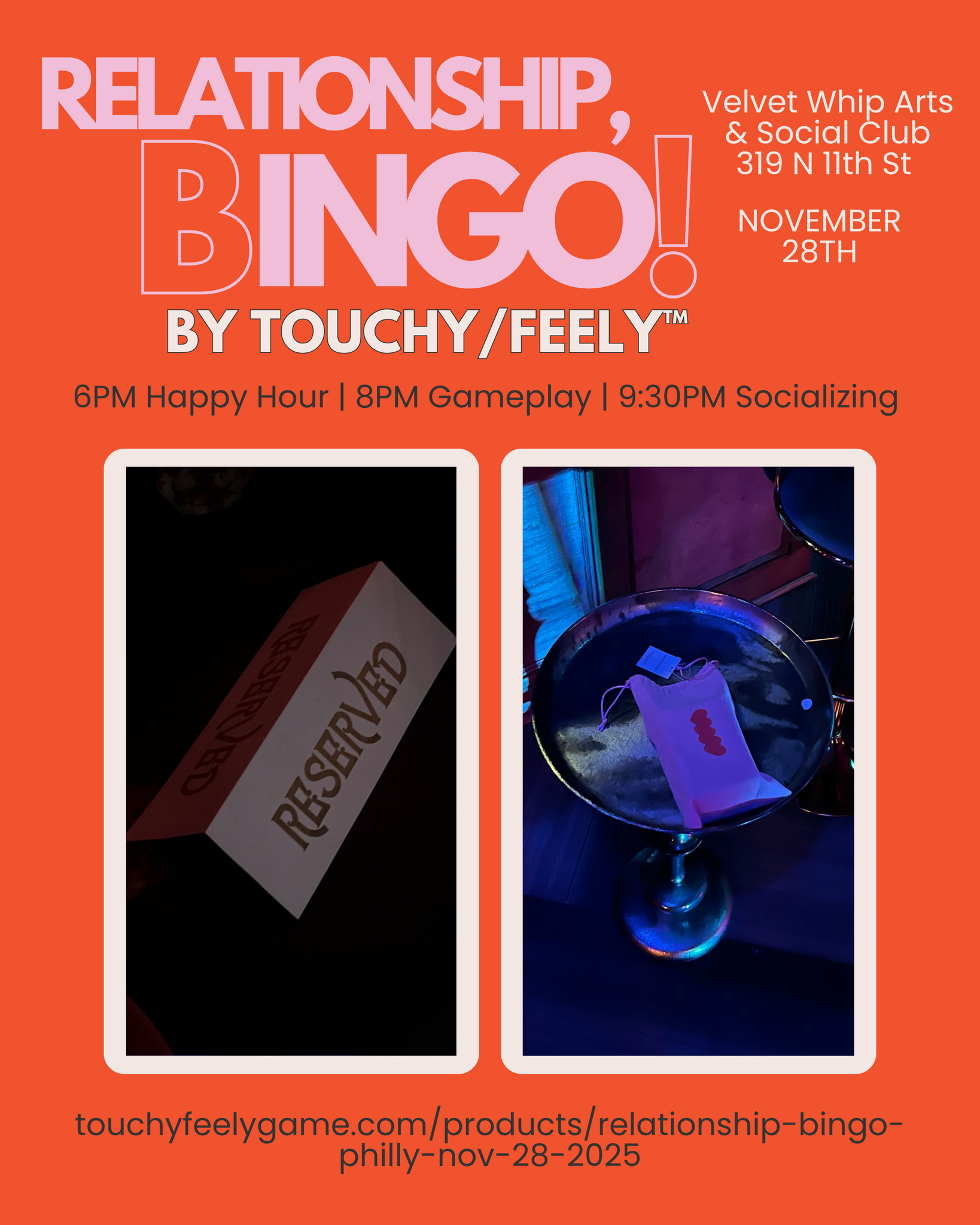 Join us at Velvet Whip Philly on Friday, November 28, 2025 for Relationship, Bingo!