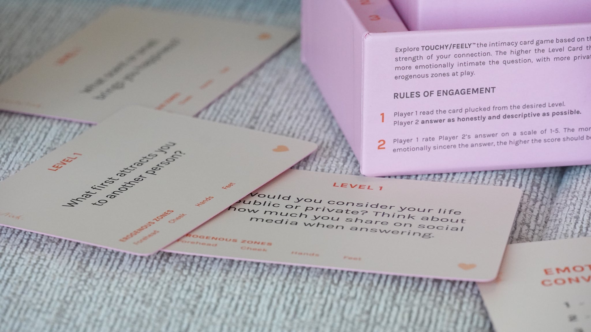 New here? TOUCHY/FEELY intimacy card game is designed to be a meaningful, fun way to practice better communication—one prompt at a time.